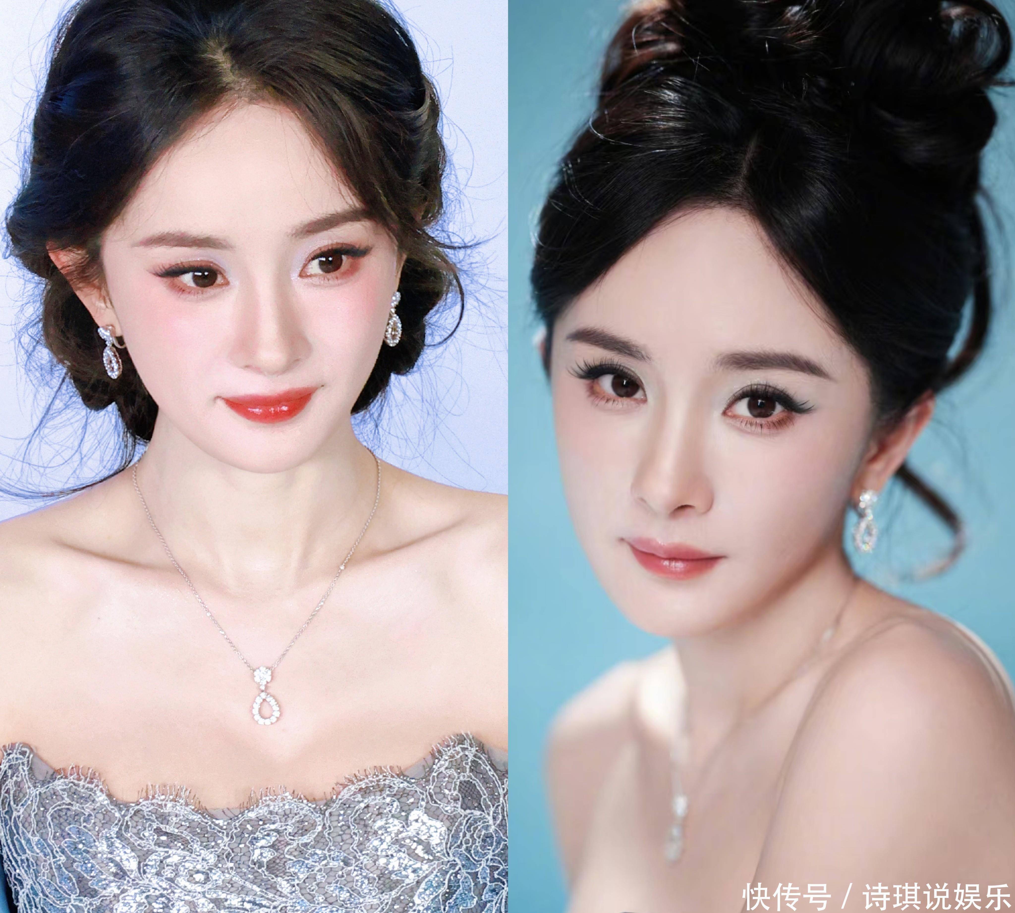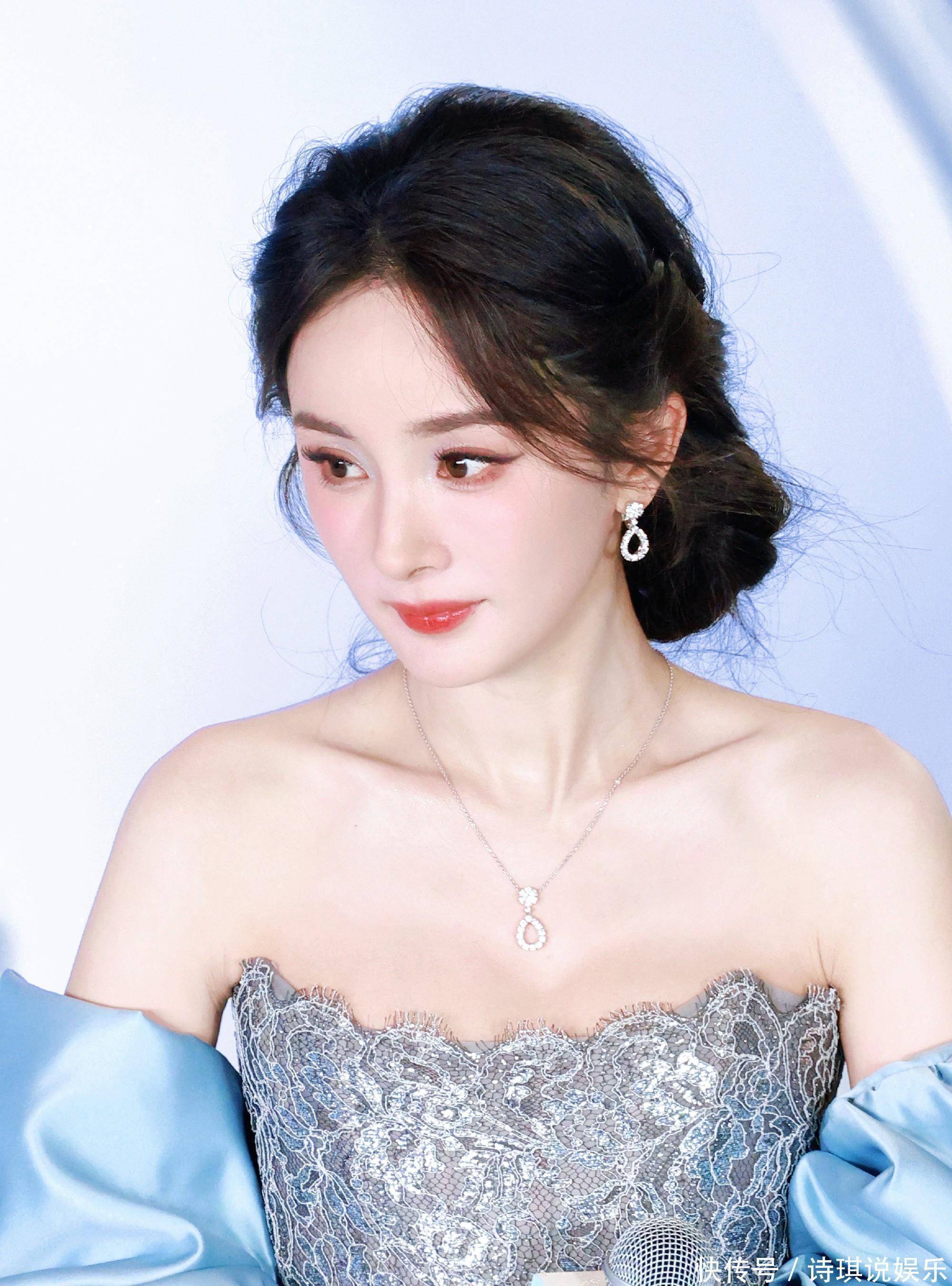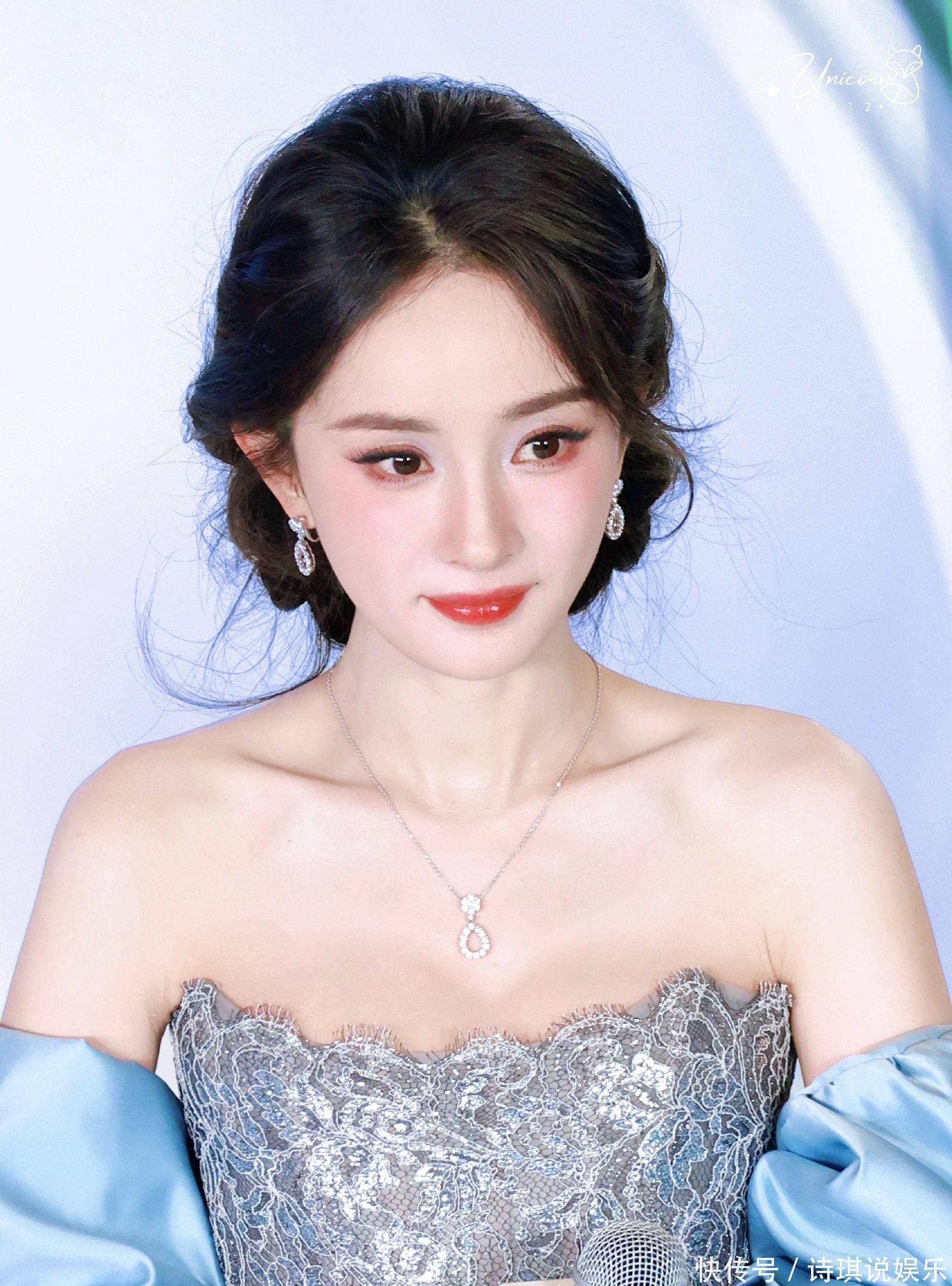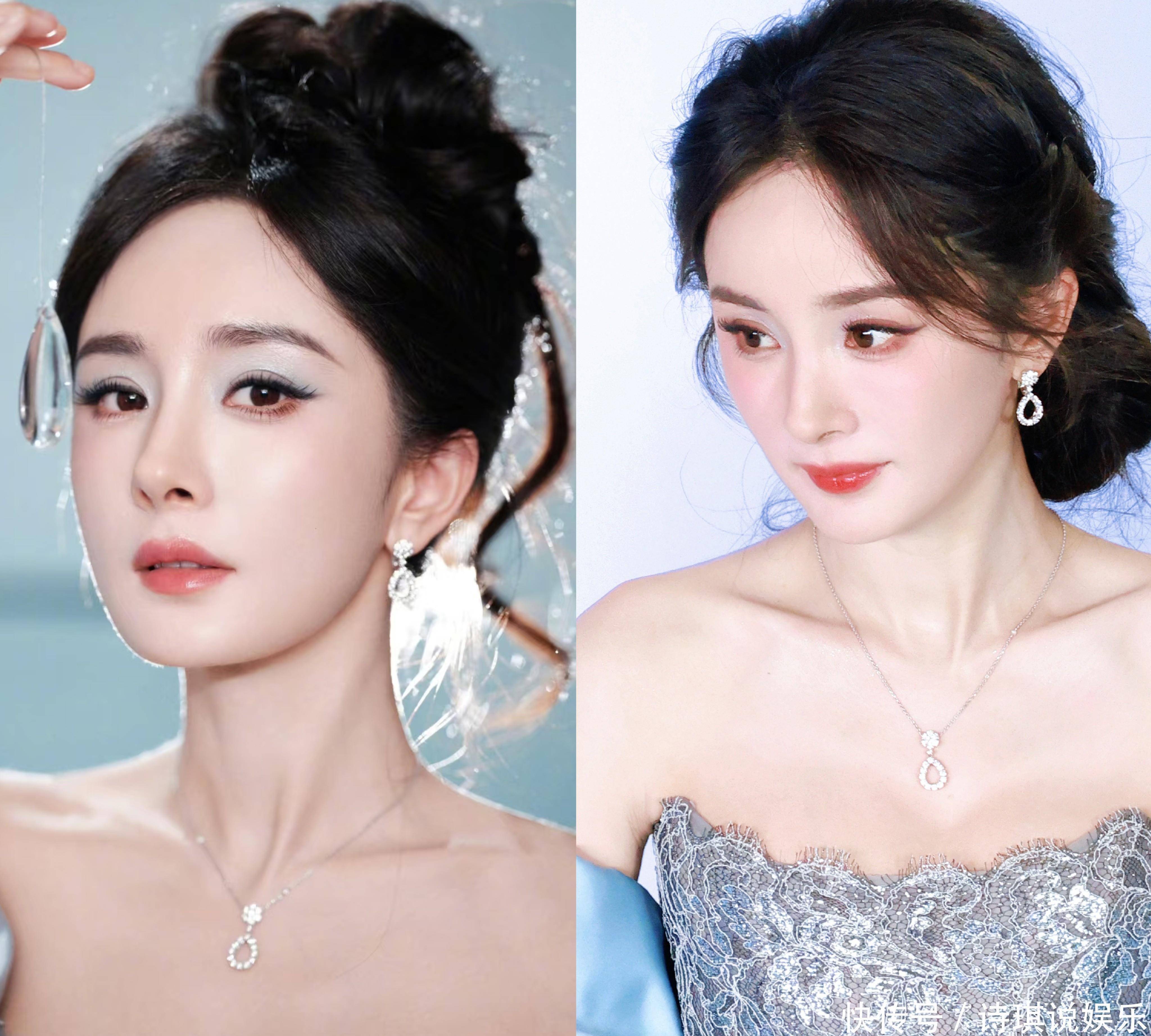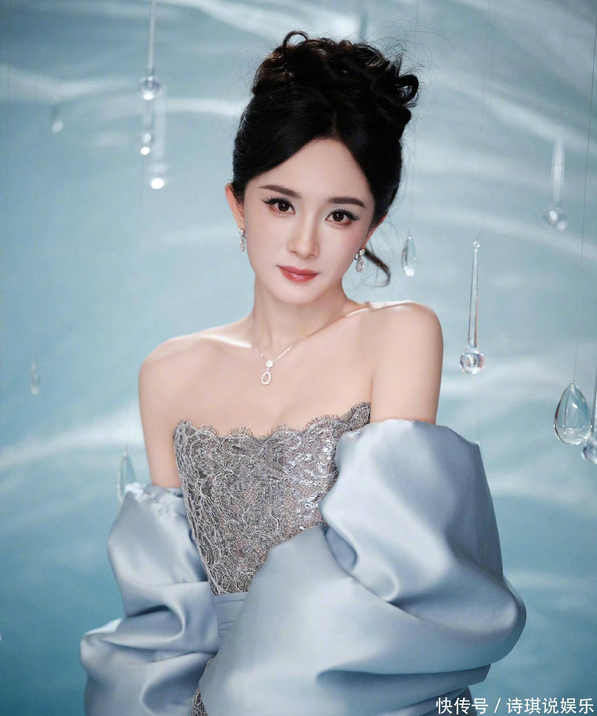 39的杨幂生图是真的白到发光,妆容精致,皮肤紧致细腻。盘着低盘发的她搭配钻石项链与耳钉,总重克拉,光线下折射出冰雪棱镜清冷的破碎感。