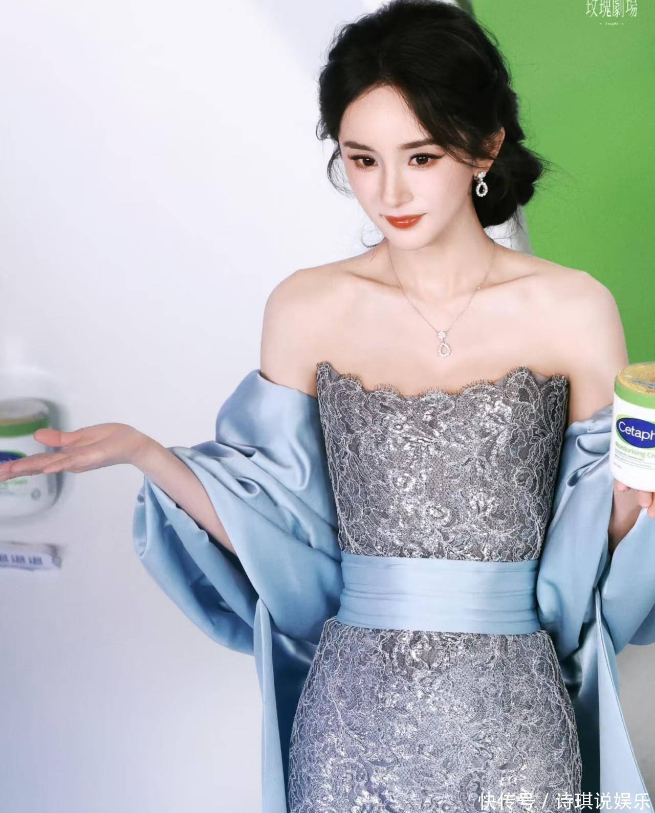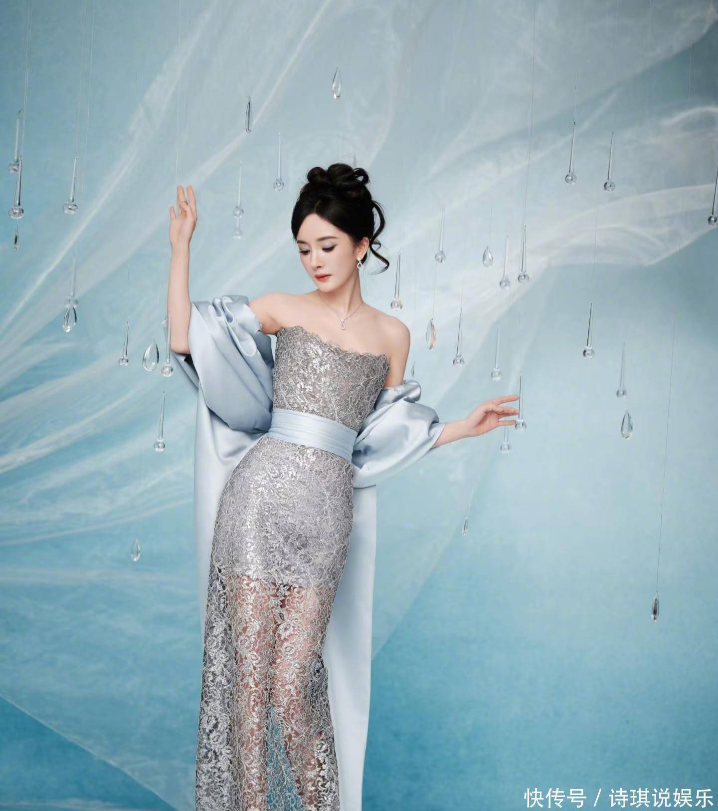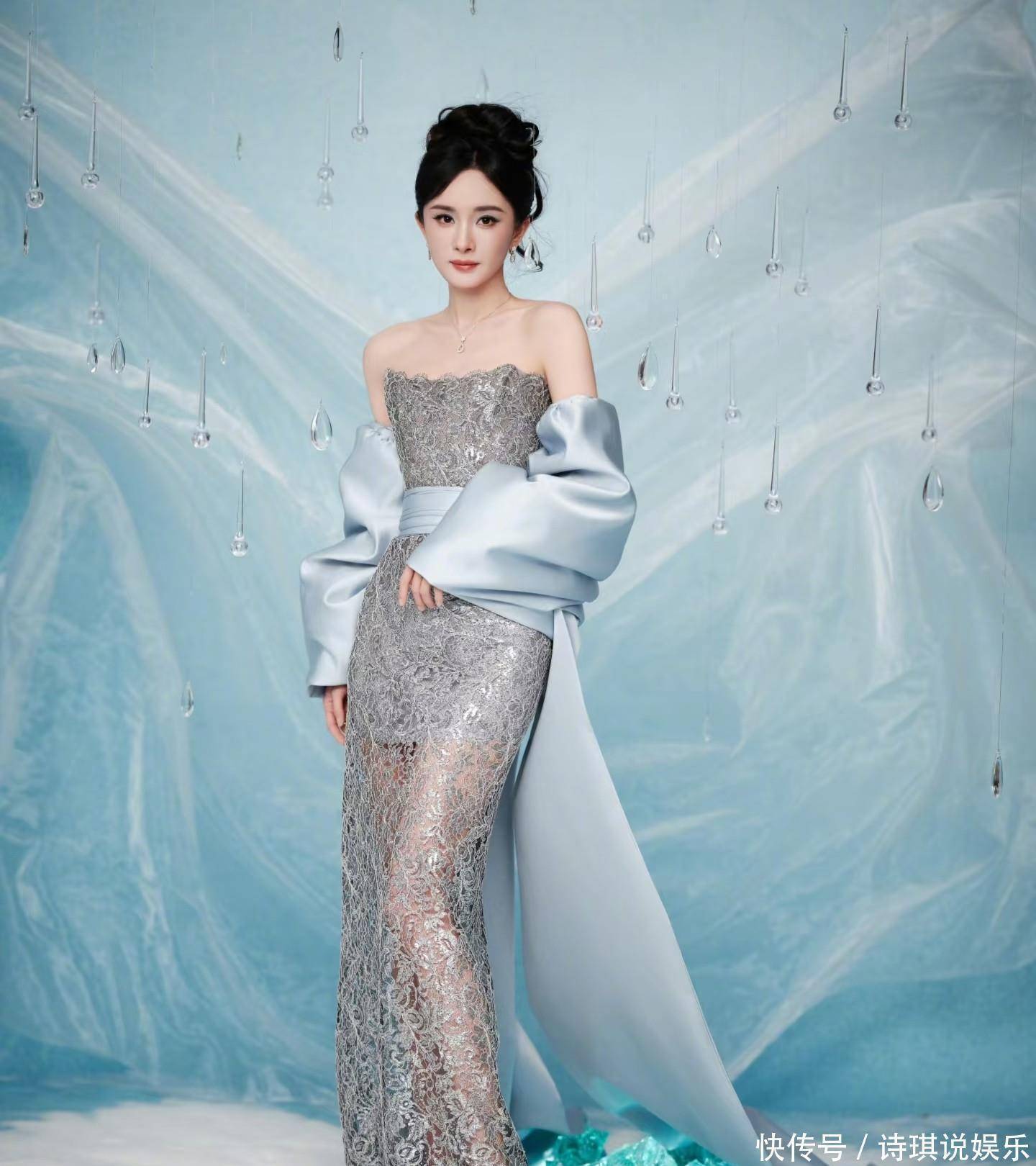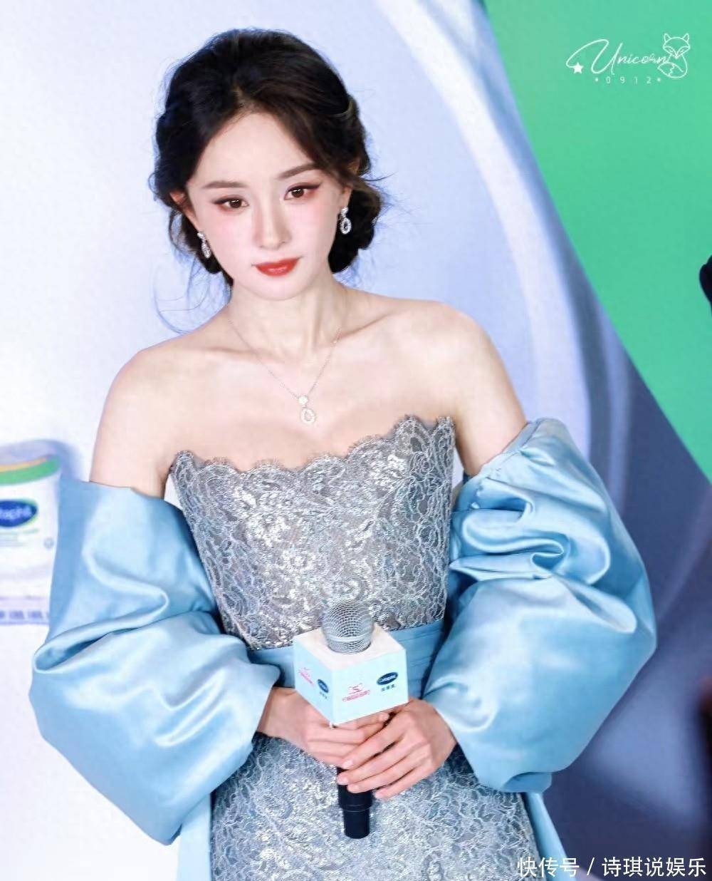 今晚,当杨幂身穿蓝色蝴蝶结缎面披帛搭抹胸镂空刺绣裙装如冰川女神般亮相上海丝塔芙活动现场时,全网瞬间被这抹融合未来感与复古宫廷风的冰雪女王美到。