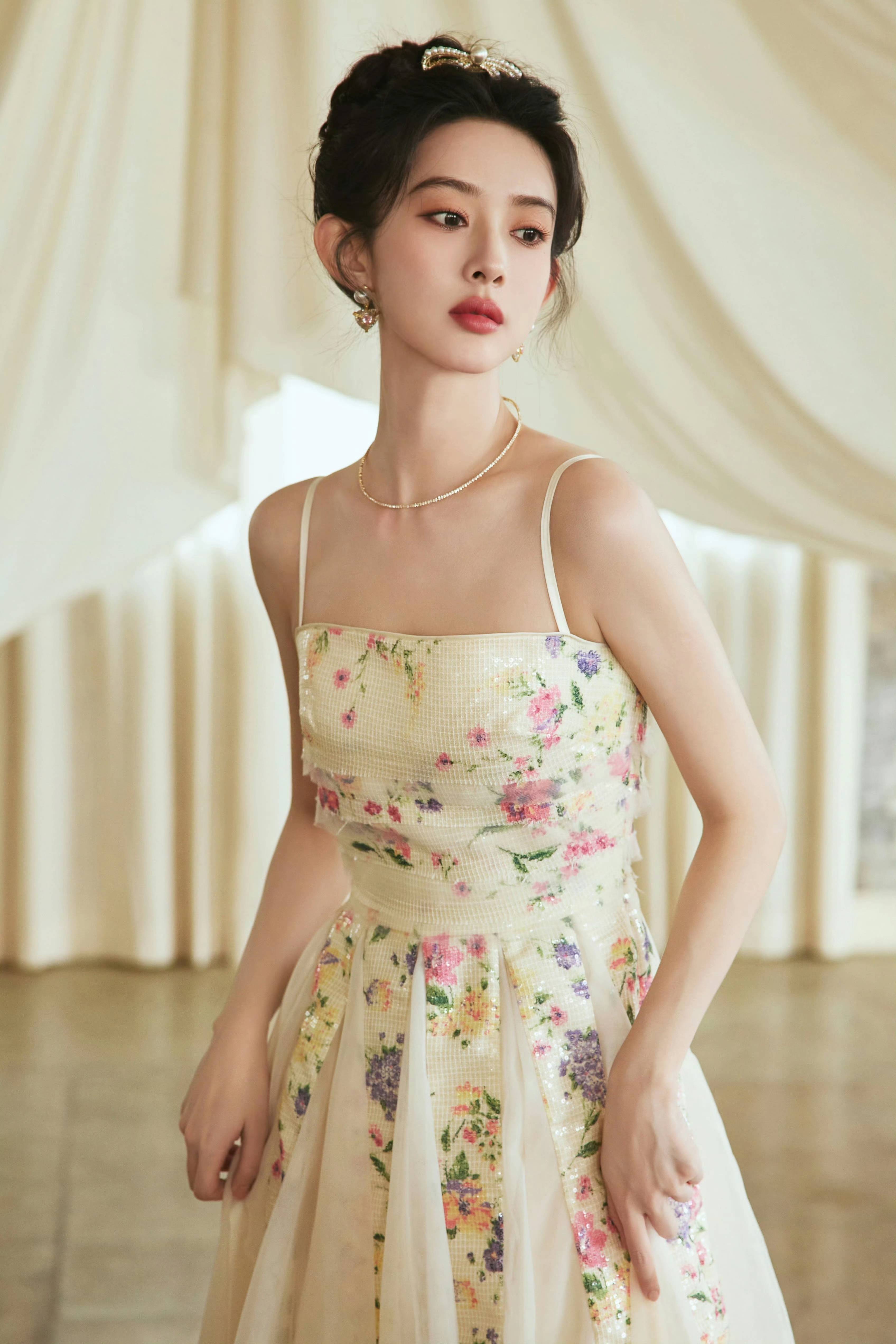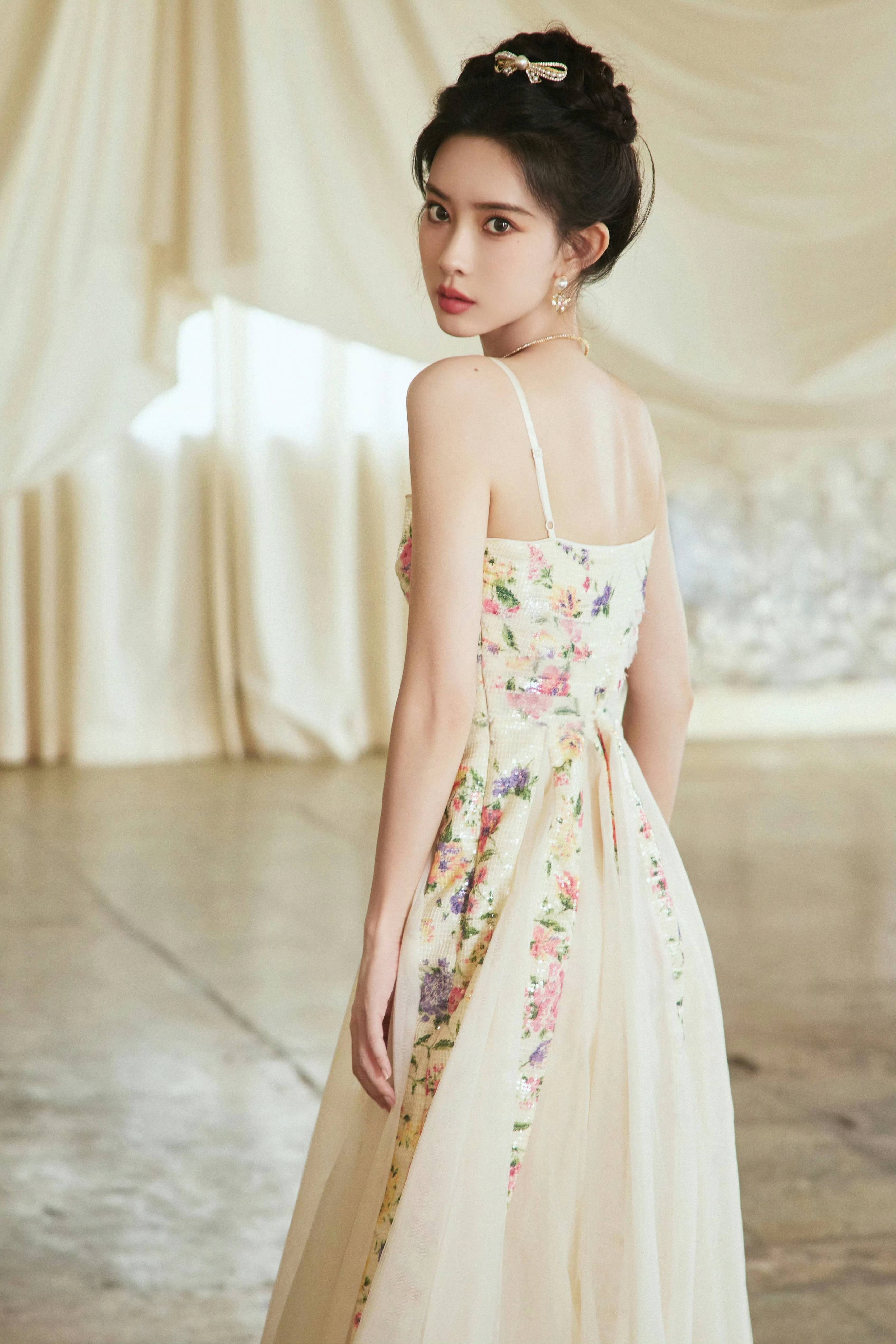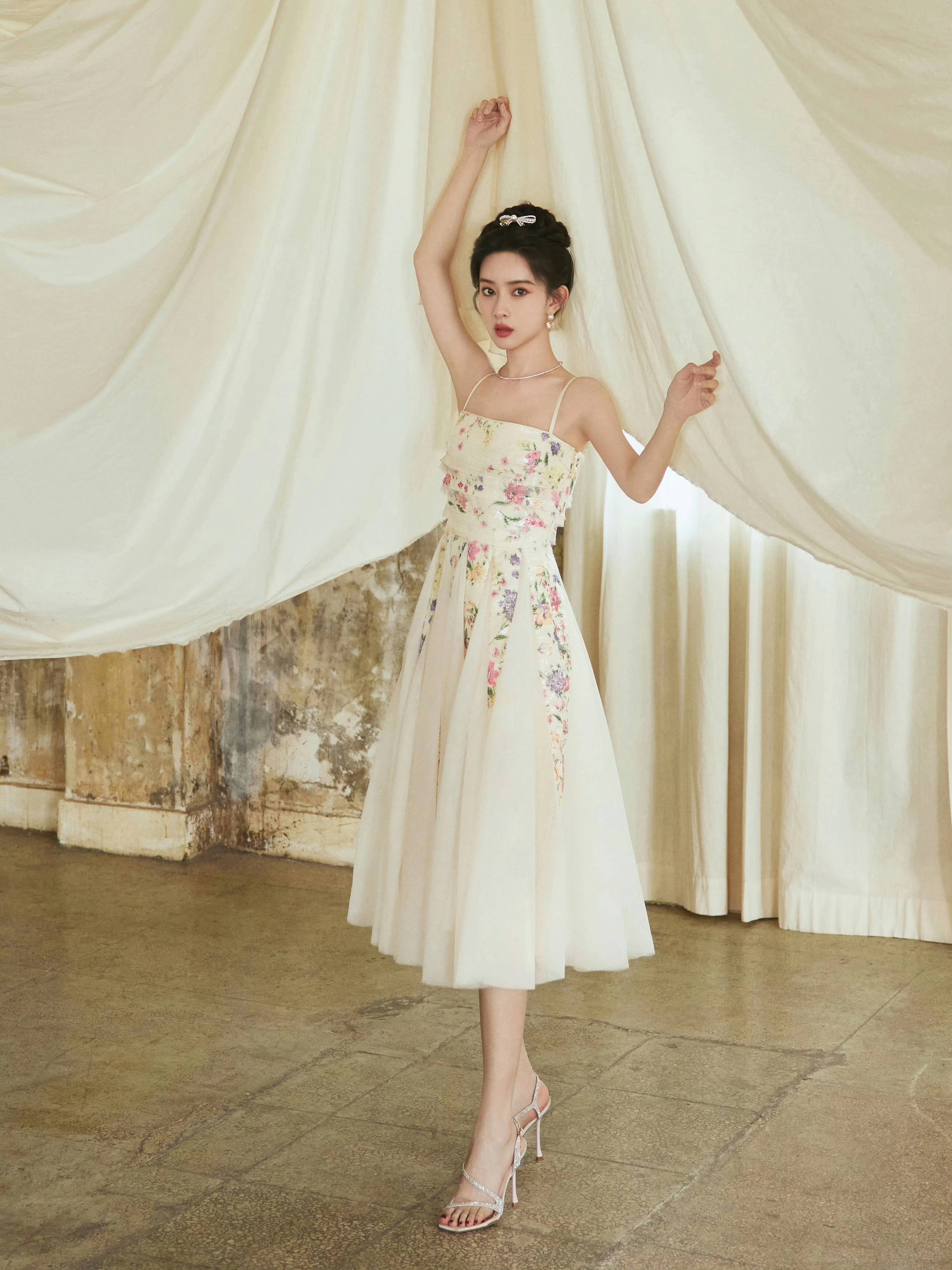 碎花吊带纱裙,是柔美与复古的时尚协奏。